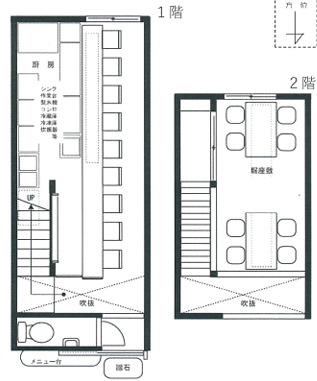 1階にはカウンター、2階は8席のテーブル席完備。
